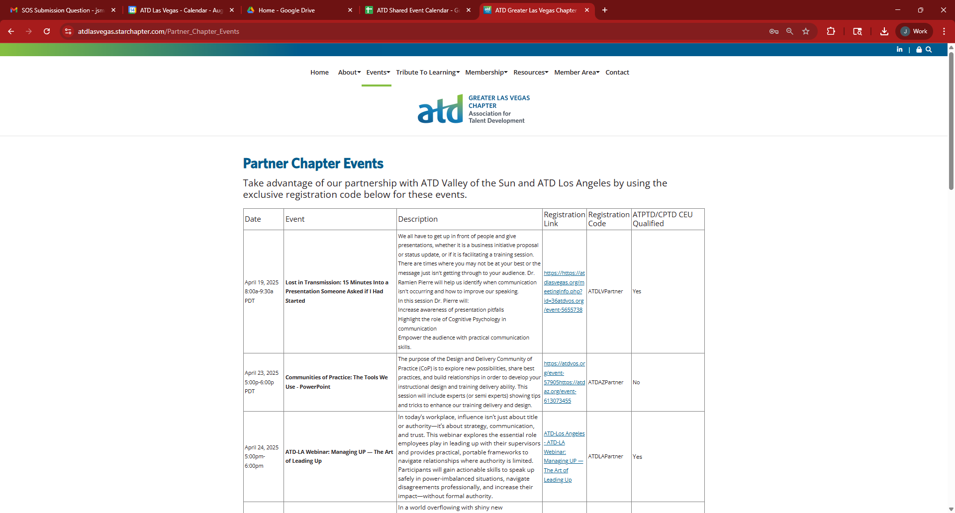 SUMMARY: In January 2024, the Los Angeles, Las Vegas, Orange County, San Diego, and Arizona ATD chapters partnered to launch a cross-chapter programming initiative aimed at expanding professional development access and strengthening community connections. Before rolling out the collaboration, participating chapters aligned on event sharing, communication practices, and reciprocal member pricing. Throughout the year, each chapter promoted one another’s programs, giving members the opportunity to attend high-quality learning events hosted across the region at no additional cost. After events, chapters exchanged feedback to refine offerings and ensure continued member value. This collaborative model broadens access, deepens engagement, and supports a more connected ATD community.