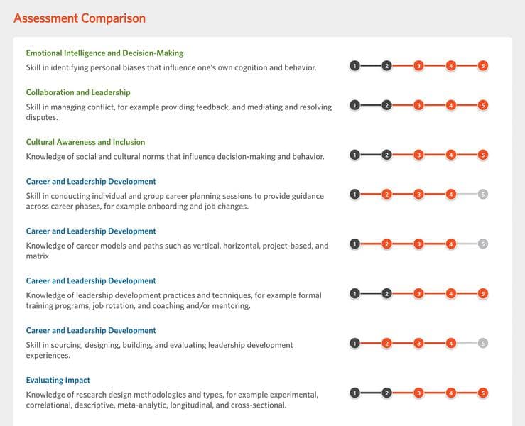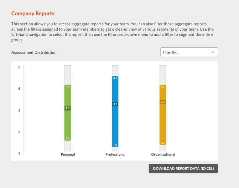 Through a proprietary assessment that pulls aggregated data about your team’s strengths and weaknesses, this assessment provides a baseline for your team’s current talent development proficiency.